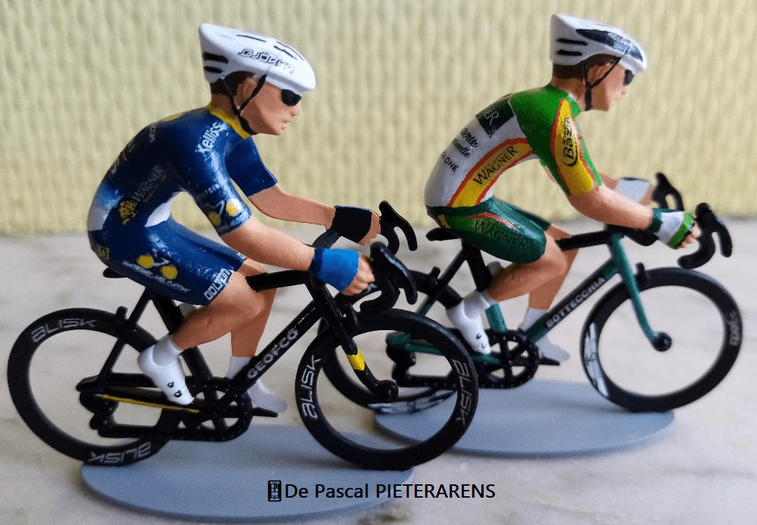PascalPIT collectionne (presque) tout ce qui a trait au cyclisme. Il a même fait réaliser des « petits coureurs » avec les couleurs des deux dernières équipes dont il a été « DS » : « GEOFCO-DOLTCINI » CONTI et « PHILIPPE WAGNER-BAZIN » CONTI. Un véritable passionné. Top 👍.