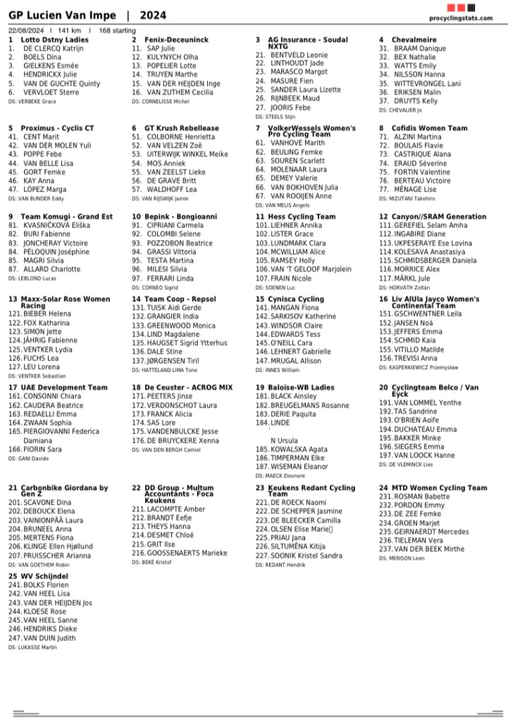 De passage à BRAKEL, nous avons aperçu les flèches (roses) de la toute première édition du « GP LUCIEN VAN IMPE » pour dames en 1.2. Une belle surprise. Plusieurs épreuves en une semaine, c’est du spectacle assuré. Les amateurs n’auront d’ailleurs que quelques mètres à effectuer. Le peloton vient jusqu’à FLOBECQ pour monter LA HOUPPE et repartir vers BRAKEL. Ensuite, retour à ERPE MERE. Notez qu’à BRAKEL, il est possible de voir TROIS ou QUATRE passages !!!