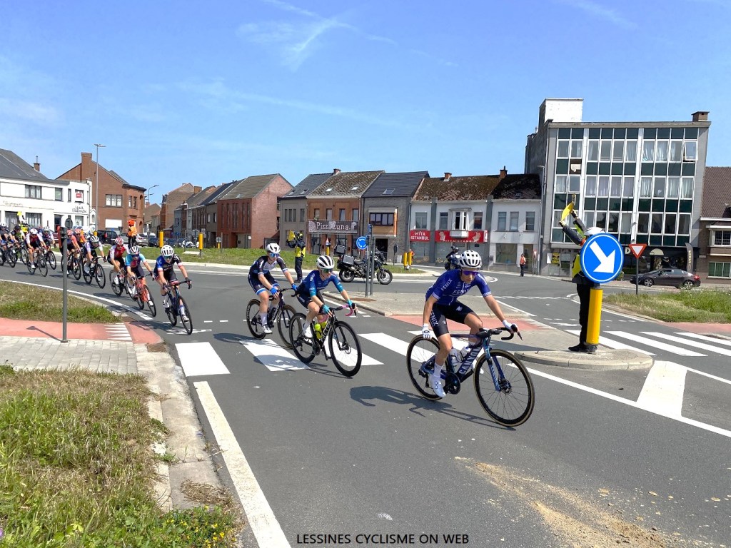 Jeudi, direction BRAKEL pour assister au passage du « GP LUCIEN VAN IMPE » pour dames. Temps ensoleillé, moyennement chaud – 22°/24° – mais surtout, un vent qui n’a manifestement pas encouragé les échappées (SO). Important. C’est presque un peloton groupé qui a entamé le VALKENBERG. De retour au rond-point de la Chaussée de Renaix (BRAKEL), c’était déjà compliqué pour une quinzaine de coureuses. Le niveau est fort disparate, même dans une 1.1. Les « COFIDIS », « FENIX », « VOKERWESSELS » et « CANYON » étaient à la manœuvre. Rythme soutenu. Durant notre boucle, nous avons vu pas mal de public dans les côtes de BRAKEL et de MICHELBEKE. La sécurité était maximale : police et signaleurs nombreux. Les files de voitures l’étaient tout autant !!! Le revêtement des routes empruntées est tout simplement idéal pour les cyclistes.