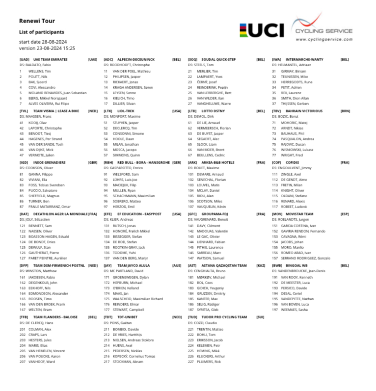 TEAMS : 1 VISMA-LEASE A BIKE 2 DECATHLON-AG2R LA MONDIALE 3 EF EDUCATION-EASYPOST …