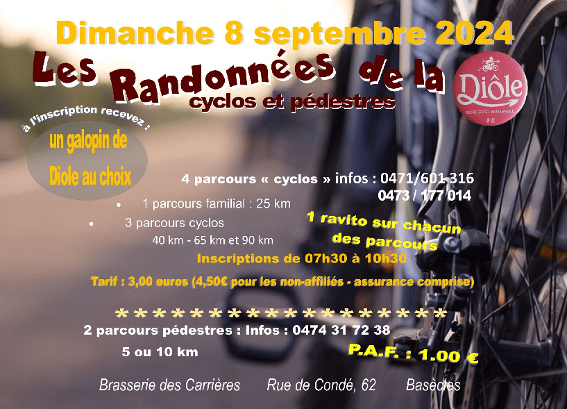 - 08/09 – BASECLES – « LES RANDONNEES DE LA DIOLE ». CYCLOS-MARCHE. ❌