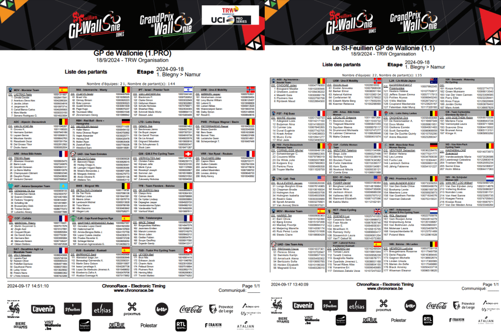 Le mercredi 18 septembre, les amateurs de compétitions seront une nouvelle fois aux anges. Deux épreuves de haut niveau ont lieu en Région Wallonne. Le « TRW ORGANISATION » propose : « SAINT-FEUILLIEN – GP DE WALLONIE » pour les dames et « GP DE WALLONIE » pour les ELITES.