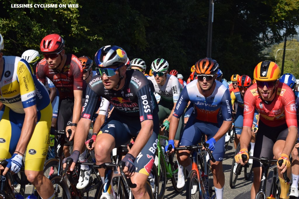 Pas de départ fictif pour « LCOW » mais un départ réel donné en face de l’église de PARIKE. En fait, dans le BERG qui prend la direction de Grammont. Grand soleil et chaleur idéale. Public nombreux en bord de route. Comme vous pouvez le remarquer, la première flèche n’a pas tardé (photo). Un très beau parcours a été proposé aux participants. Les attaques furent vaines. A part dans les 50 derniers km. A 12 km du terme, Filippo BARONCINI déboite le petit groupe d’une bonne quinzaine de fuyards. Les écarts sont minimes. Toutefois, BARONCINI tiendra bon. Il remporte cette très belle édition de la « SUPER 8 CLASSIC ». PLUIMERS a également réussi à s’extirper du groupe et prend la seconde place. Enfin, OLIVEIRA bat JEANNIERE pour le podium. Le team « UAE EMIRATES » a réalisé une démonstration. Une épreuve très animée !!!