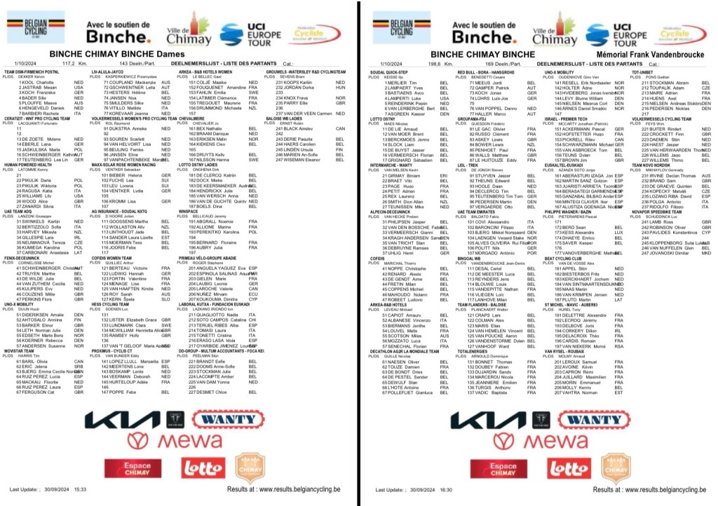 Avec « BINCHE-CHIMAY-BINCHE », c’est déjà la morne saison qui se pointe à l’horizon. Encore quelques épreuves nationales et internationales. Après, il sera temps de passer au cross et à la piste. « BINCHE » est souvent une épreuve très disputée autant chez les dames que chez les messieurs. Peu importe la météo, le public répondra présent en masse car les pelotons seront attrayants.