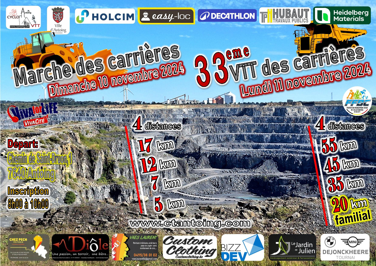 Ce « CT ANTOING » organise son 33e : « VTT DES CARRIERES » en date du 11 novembre 2024.