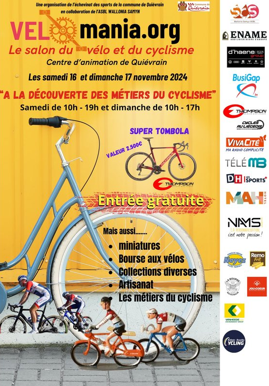 C’est par « TELE MB » que nous apprenons qu’un salon du vélo et du cyclisme dénommé : « VELOMANIA.ORG » a lieu à QUIEVRAIN, les 16 et 17 novembre.