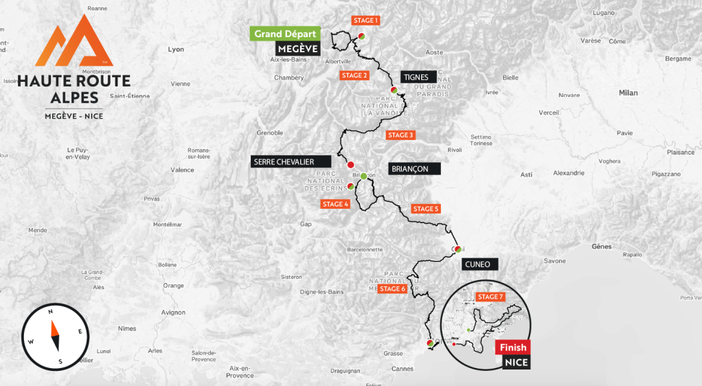 - Le programme de la « HAUTE ROUTE ALPES » 2025 est affiché par l’organisateur (24>30/08). Sébastien DEBAYE signale qu’il remettra le couvert. Voyez la carte : 7 étapes, 800 km et 18.800 D+. Préparation intensive indispensable.