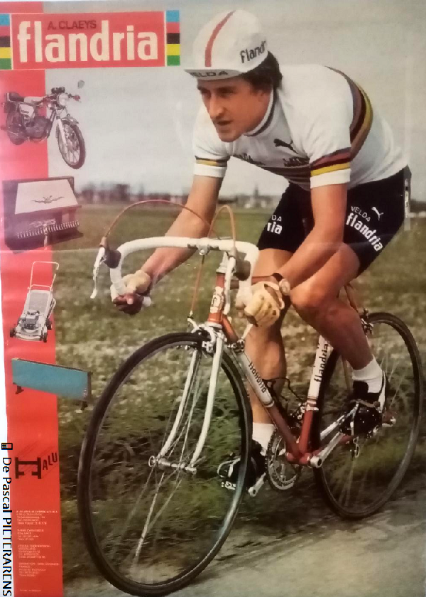 Un grand collectionneur de tout ce qui concerne « FLANDRIA » et plus particulièrement Freddy MAERTENS. Le « petit coureur » fait partie d’un ensemble. Maillots, casquettes, vélo, etc. Et publicités off course. Il possède le tout. Voyez ci-dessous !