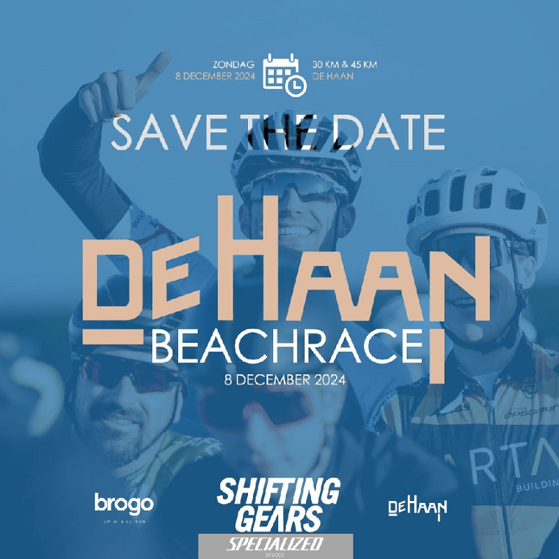 La « SPECIALIZED BEACHRACE DE HAAN » (SHIFTING GEARS) est la première des trois manches organisées par « BROGO », une société événementielle (aussi Triathlons). KNOKKE-HEIST – 24/12 – permettra aux CHAMPIONS DE BELGIQUE d’exhiber leur maillot pour la première fois. Ensuite, ZEEBRUGGE – 05/01 – clôturera les Congés de Noël.