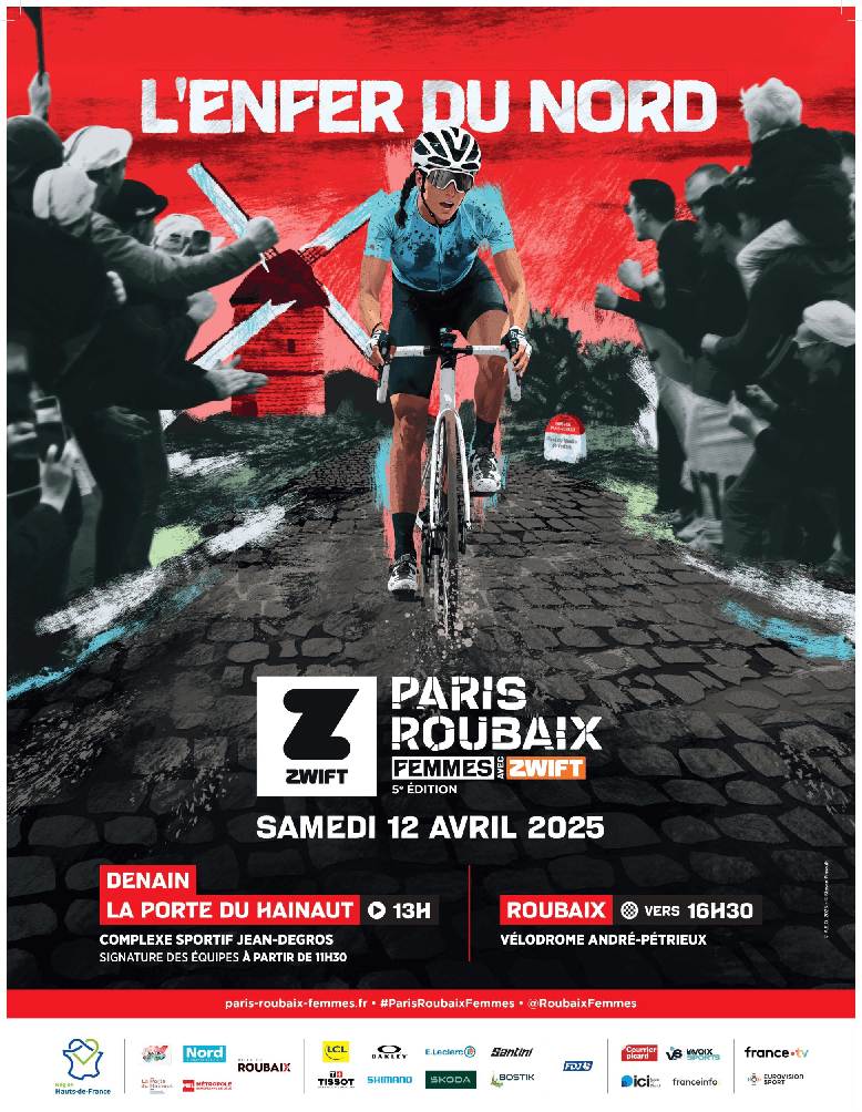 - 12/04/2025. « PARIS-ROUBAIX FEMMES ». WT. DĂ©p de DENAIN Ă 13.00 et arr Ă ROUBAIX vers 17.00. 148.5 km. Avec : DUVAL, CHABBEY, LE NET, BALSAMO, VAN DIJCK, BACKSTEDT, CASTRIQUE, WIEBES, VOS, FERRAND PREVOT, KOPECKY, PIETERSE, GILLEPSIE, KOOL, ATHOSALO, BERTEAU, JACKSON, CONSONNI, DIGERT, etc. En TV !!!