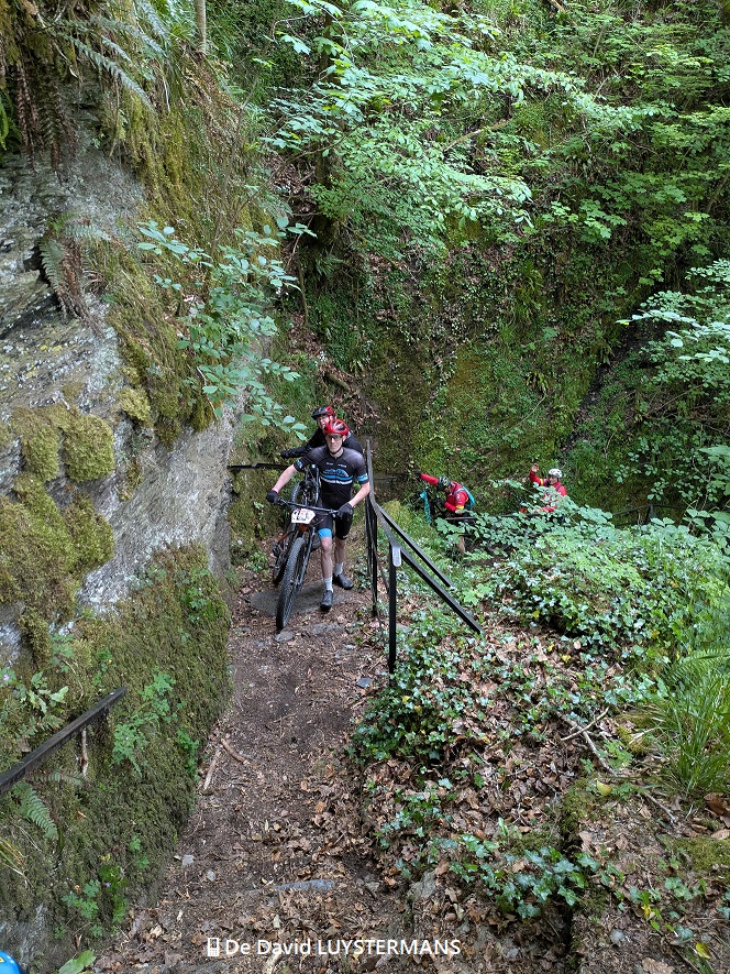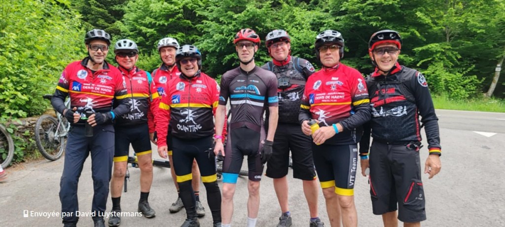 Le « VTT TEAM LESSINES » avait dĂ©tachĂ© une petite dizaine de membres Ă HERBEUMONT. Une citĂ© calĂ©e entre BOUILLON, BERTRIX et NEUFCHATEAU. Pas très loin de LIBRAMONT oĂą la FMB organisait un enduro moto d’anthologie uniquement dans les bois. Ornières et racines au menu. Les valeureux lessinois ne doivent pas se douter qu’ils Ă©taient dans la ville oĂą Serge REDING – MĂ©daillĂ© Olympique en haltĂ©rophilie – est inhumĂ©. Une Ă©lite sportive des annĂ©es 1960. Mais place au « VTT DES PENITENTS » (pas eux …). Et Ă la marche … . Tout d’abord, sachez qu’ils Ă©taient partis la veille pour ĂŞtre Ă l’heure au dĂ©part. Hohohoho. Ils ont logĂ© dans une Auberge de Jeunesse. Faut dire qu’il n’y avait que des « toujours jeunes » dans la troupe. Cela fait de la route pour rejoindre l’autre bout de la Belgique. DavidL rapporte que tout Ă©tait parfait. Accueil, rando, flĂ©chage, ravito, etc. Les images parlent d’elles-mĂŞmes. Le flanc de collines et les escaliers, c’est tout juste pour des VTT MOTORISES. Une superbe journĂ©e. Comme de coutume, des clubs amis Ă©taient de la partie : CHARBONNAGES-3 CANAUX- … . SĂ»r que pour faire des dĂ©couvertes paysagères, il faut sortir du pĂ©rimètre de la WAPI ! Top.