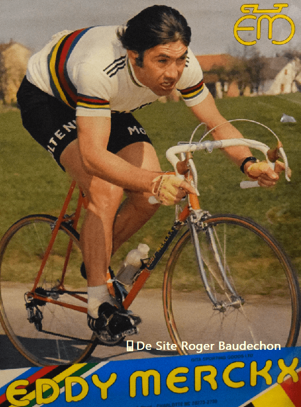 📱De Site Roger Baudechon. Notez qu’Ă une certaine Ă©poque, tout le monde devait avoir son vĂ©lo « EDDY MERCKX ». C’est aussi notre cas. Et il roule toujours ! Poster des annĂ©es fastes.