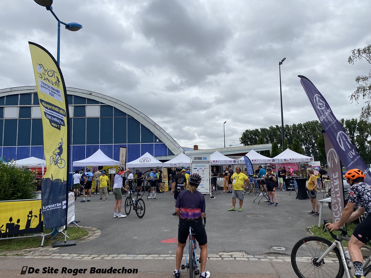 Le « COMPLEXE LEO LAGRANGE » est imposant. Tout dĂ©diĂ© aux sports. A notre arrivĂ©e, les parkings (pourtant grands) sont complets. Le gros des rouleurs Ă©tait dĂ©jĂ sur les routes. En effet, un dĂ©part groupĂ© Ă©tait prĂ©vu Ă 07.30. Notre passage Ă l’inscription fut aisĂ©. Accueil rapide. Mise en route idem. Flânerie en bord de Lys. Un Ravel. Nous rĂ©alisons les dix premières bornes avec un couple de Seclin (27km/h – too much). Nous arrĂŞtons aux abords de quelques cimetières – très nombreux. Devant le « MUSEE DE LA BATAILLE DE FROMELLES » – superbe. Nous coupons et recoupons les lignes de plusieurs fronts : anglais, hollandais, allemand. Le flĂ©chage de la « CH’TI BIKE » est top. Nous tirons de longs bouts sur des dĂ©partementales. Un peu trop nombreux. Nous croisons deux patrouilles de gendarmerie. L’une d’elle, Ă©quipĂ©e d’un radar portatif, stoppait les speed du volant. Nous naviguons entre le « Pas-de-Calais » et « Le Nord ». Ravito plaisant Ă FESTUBERT. De nouveaux cimetières militaires bordent notre chemin. Jusque lĂ , c’Ă©tait nez dans le guidon car le vent Ă©tait excessivement puissant. Nous avons loupĂ© une flèche en donnant la route Ă un autre couple qui semblait en perdition. Allez rendre service !!! lol. Nous passons dans quelques villages dont les « MAIRIES » sont caractĂ©ristiques. Et, les monuments aux morts sont souvent affublĂ©s du drapeau tricolore. Avant d’oublier. Notez que les galettes « LOOPIZ » de la « PATISSERIE DES FLANDRES » sont succulentes. Et que, les chips « LA FLAMANDE » de « BELLEVUE » sont excellents. Les nordistes savent y faire pour promouvoir leurs produits locaux ! Dans le gobelet final, c’Ă©tait de la « CH’TI » (on en sort pas) de la « BRASSERIE CASTELAIN ». Nous nous rapprochons de la frontière. Nous faisons une incursion jusqu’Ă Le Bizet – Belgique. Ploegsteert n’est pas loin (plaques directionnelles). Nous ne rentrons pas de suite. Nous avions prĂ©vu un passage par le centre ville. Voir EP1. Au centre sportif, le parc Ă vĂ©los est bien occupĂ©. Une longue file d’attente se forme pour le sandwich (compris dans les 10€) rĂ©cupĂ©rateur – au choix et de quoi remplir deux estomacs. Pour le mal de jambes, des tables de massage Ă©taient Ă votre disposition. Un speaker + DJ mettaient du volume. Vous ne pouviez pas manquer le dĂ©cor « TOUR DE FRANCE ». Plusieurs stands vous permettaient d’obtenir une denrĂ©e ou des gadgets. Top !!! Une terrasse vous permettait de vous dĂ©lasser. AUCUN regret. Le « CH’TI BIKE TOUR » valait le dĂ©tour !!! Sans prĂ©sumer du futur, nous pourrions vous donner rendez-vous en 2026.