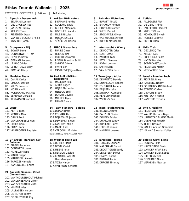 Liste des partants (« Pcs Cycling » – Officielle fĂ©dĂ©ration Ă venir)