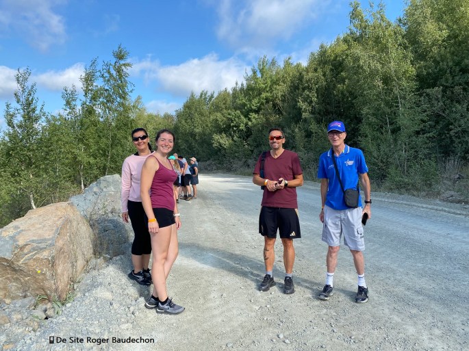 Grand soleil, mais 12° très matinalement. Vers 09.30, 18°. Le « CAYOTEU » dĂ©butait sa semaine de rĂ©jouissances par la marche « TOUS UNIS POUR ALEXIS ». A la manĹ“uvre, le « RVC SAINT-ROCH » + autres bĂ©nĂ©voles. A notre arrivĂ©e, le chalet Ă©tait pris d’assaut. Nous avons entrepris le 05 km. A la bifurcation, nos camarades sont partis sur le 10 km. Le dĂ©part Ă©tait tonitruant. Vous longiez l’intĂ©rieur de l’exploitation – cĂ´tĂ© droit en allant vers Bois-de-Lessines – des CUP. Un dĂ©cor impressionnant devant lequel nous restons tous Ă©bahis. Au passage du dinosaure (DavidL hohoho), tout le monde voulait se faire prendre en photo avec l’animal ! Nous avons pu constater de visu que les carrières ont mis le paquet dans le cadre de leur nouveau projet. Le 05 km repartait vers le centre ville via la ChaussĂ©e Richet, le Ravel, l’IPAM et l’Ă©glise Saint-Roch. Les autres distances Ă©taient très champĂŞtres : Ollignies, Bois-de-Lessines, … . De beaux parcours. A la fin de la journĂ©e, l’organisateur a annoncĂ© la prĂ©sence de plus de 350 marcheurs. Et, plus de 100 petits-dĂ©jeuners ont Ă©tĂ© servis. La totalitĂ© des bĂ©nĂ©fices est destinĂ©e Ă l’ASBL pour laquelle cet Ă©vĂ©nement avait Ă©tĂ© mis sur pied. Bravo Ă tous !