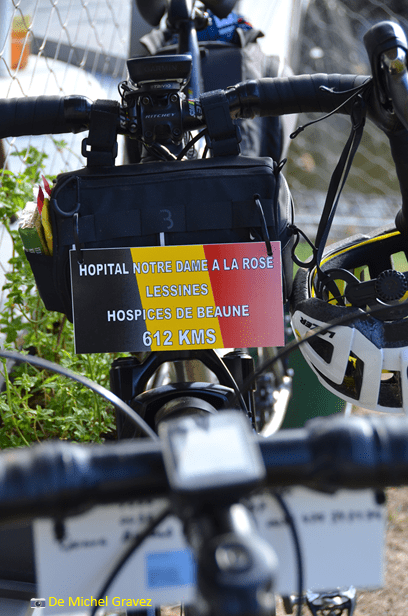 Le groupe formĂ© Ă partir des « CYCLOS SAINT-ROCH » pour relier « LESSINES A BEAUNE » ou « L’HOPITAL NOTRE-DAME A LA ROSE » AUX « HOSPICES » a pris son envol Ă 10.00.