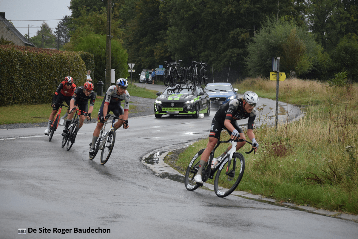 đź“·De Site Roger Baudechon 2025. A l’entrĂ©e de BASSILLY. Une mĂ©tĂ©o infernale. Une partie des Ă©chappĂ©s. D’autres suivent Ă quelques secondes. Le peloton est Ă 1 min 30 sec.