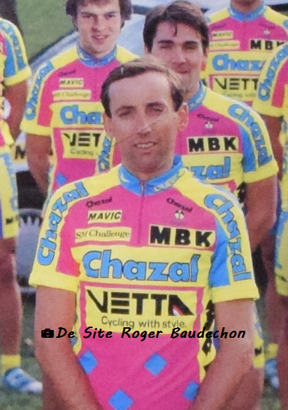 Eric CARITOUX (Fr – 65 ans) fut un excellent coureur. Natif de la rĂ©gion du Mont Ventoux, il avait tout Ă sa disposition pour devenir un très bon grimpeur. En plus, d’ĂŞtre un rouleur performant sur le chrono. CARITOUX a Ă©tĂ© pro de 1983 Ă 1994 : « SEM-MAVIC-REYDEL », « SKILL-REYDEL-SEM », « SKIL-SEM-KAS-MIKO », « FAGOR », « KAS-CANAL 1-MAVIC », « RMO-MAVIC-LIBERIA », « RMO », « CHAZAL-VETTA-MBK » et « CHAZAL-MBK-KONIG ». Il a connu les Ă©quipiers suivants : AGOSTINHO – BEUCHERIE – BITTINGER – BOYER J – ONGHENA – KELLY – ROOKS – TINAZZI – GALLOPIN – POISSONNIER – VICHOT – VON ALLMEN – KNETTEMAN – PIRARD – les GARDE – les GUYOT – ABADIE – EARLEY – HOSTE – LEMARCHAND – VERSCHUERE P – ACHERMANN – HERNANDEZ – les MARTINEZ – RUIZ CABESTANI – UNZAGA – VAN CALSTER – WEGMULLER – BAGOY – CLAVEYROLAT – ESNAULT – les PEDERSEN – PINEAU F – RIBEIRO – les VALLET – WUST – MOTTET – BRUN – LAURENT – LINO – VERMOTE M – les MADIOT – BOUVATIER – STEVENSON – VIRENQUE – MANIN – PENSEC – MAGNIN – BIONDI – CHANTEUR – KASPUTIS – KIRSIPUU – KOSLITINE – FURLAN – ARROYO – LOCATELLI – PHILIPOT – DELBOVE – … . A son palmarès, on dĂ©nombre : 3eme « GP OUEST FRANCE » – 1er « TOUR D’ESPAGNE » 4 Ă©ditions + Ă©tape ( + 6eme, 11eme, … .) – 8eme « PARIS-TOURS » – 7eme « SEMAINE CATALANE » – 7eme « PARIS-NICE » – 2eme « GP MIDI-LIBRE » – 5eme « QUATRE JOURS DE DUNKERQUE » – 5eme « ETOILE DE BESSEGES » – 1er « TROPHEE DES GRIMPEURS » – « CHAMPION DE FRANCE » route 2 x – 5eme « TOUR MEDITERRANEEN » – 12e « TOUR DE FRANCE » 12 Ă©ditions (17eme, 22eme, … .) – 19eme « FLECHE WALLONNE » – 23eme « MILAN-SAN REMO » – 25eme « LIEGE-BASTOGNE-LIEGE » – 14eme « TOUR DE ROMANDIE » – 1er « TOUR DU HAUT VAR » – 21eme « TOUR D’ITALIE » 1 Ă©dition, … . Le « TOUR D’ESPAGNE » 1984 revient souvent dans les Ă©crits. Il est vrai qu’il l’a remportĂ© avec 6 petites secondes d’avance sur Alberto Fernandez BLANCO. Ce qui reprĂ©sente un exploit. Sur cette « VUELTA », VAN CALSTER gagnera le classement des POINTS et LIECKENS celui des SPRINTS INTERMEDIAIRES. CARITOUX, c’est aussi un gain important de victoires (+/- 30) sur le circuit professionnel. Après sa carrière il est devenu viticulteur/agriculteur + gĂ®te, dans sa rĂ©gion. Par ailleurs, il assure les relations publiques pour des organisateurs d’Ă©preuves cyclistes. Souvenons-nous.