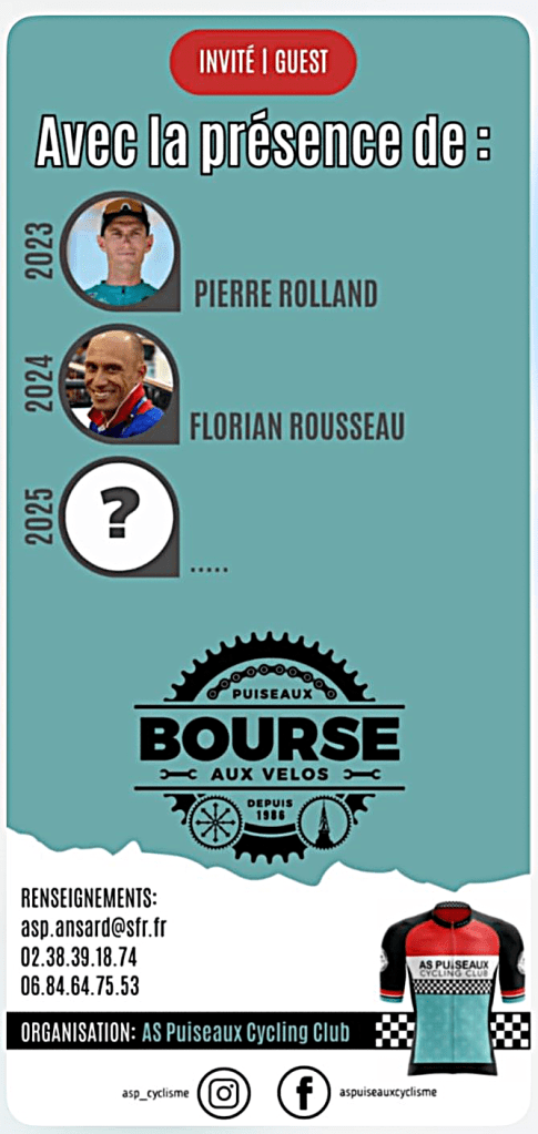 Mr Jean MORARD – Association Sportive de Puiseaux (France) – nous prie de bien vouloir diffuser cette information concernant la « BOURSE AUX VELOS » qui sera organisĂ©e dans sa commune du Nord Loiret.