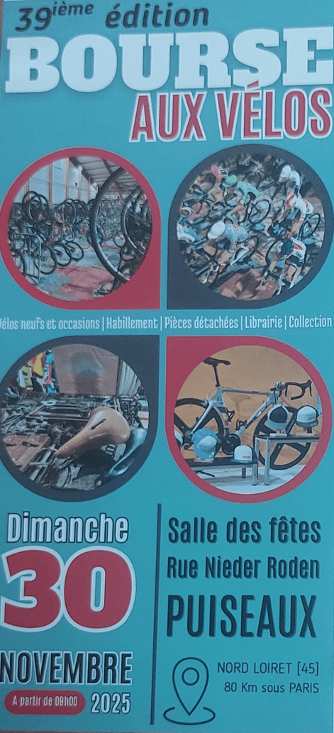Mr Jean MORARD – Association Sportive de Puiseaux (France) – nous prie de bien vouloir diffuser cette information concernant la « BOURSE AUX VELOS » qui sera organisĂ©e dans sa commune du Nord Loiret.
