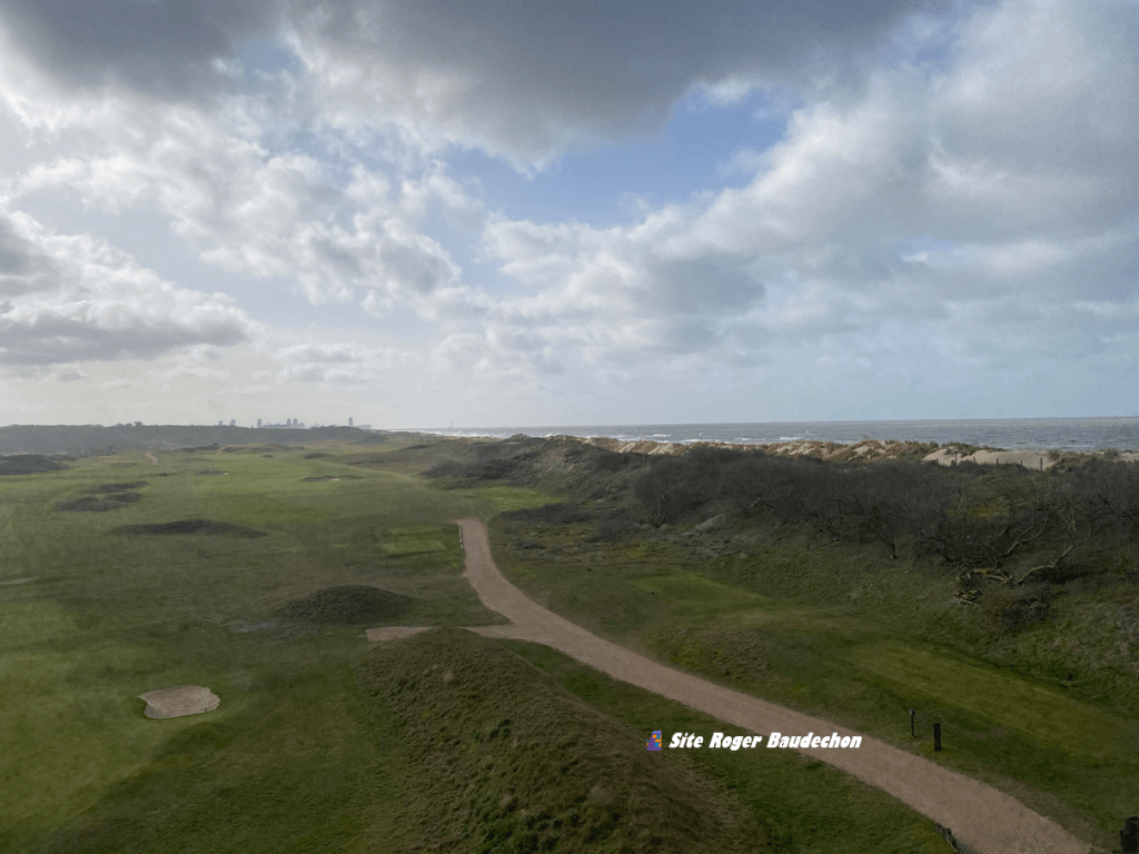 Vue sur la plage de VOSSESLAG avec des vagues de 2 mÚtres de haut. Et, sur le golf situé entre BREDENE et DE HAAN/LE COQ (du haut du phare).