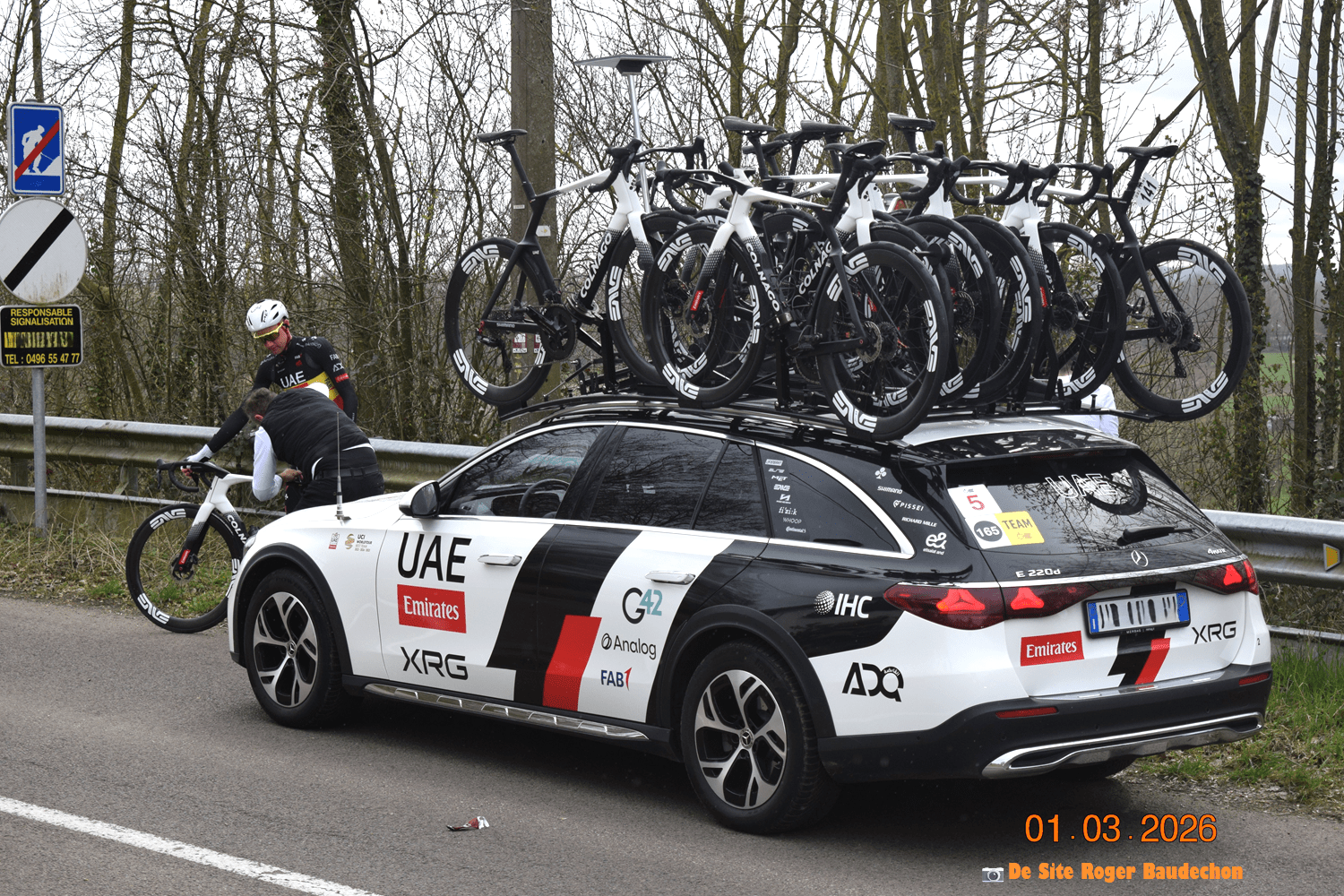 « KUURNE-BRUSSEL-KUURNE » 2026. « LCOW » Ă©tait dans le QUENEAU – Flobecq. Tout Ă coup, Tim WELLENS arrĂȘte face Ă nous. Un problĂšme de selle ? Le temps de prendre une image et de bien le regarder dans son superbe maillot tricolore. Calme. D’autres voitures arrĂȘtent Ă leur tour. Nous repartons vers la RN Flobecq-Renaix. Second point de passage. Les coureurs font la boucle par LA HOUPPE, BOIS et la descente de la GARE. Les premiers ont augmentĂ© leur avance. Le peloton prend toute la largeur de la chaussĂ©e – pistes cyclables comprises. Il y a des lĂąchĂ©s. OĂč est la voiture balai ? AprĂšs un long dĂ©lai, le drapeau vert apparait. Les vĂ©hicules sont libĂ©rĂ©s. ArrivĂ© sur la Place de Flobecq, une ambulance passe dans l’urgence. Quid ? Au retour, nous verrons Tim WELLENS chuter juste aprĂšs les radars. A vol d’oiseau, nous Ă©tions Ă©galement Ă +/- 1 km.