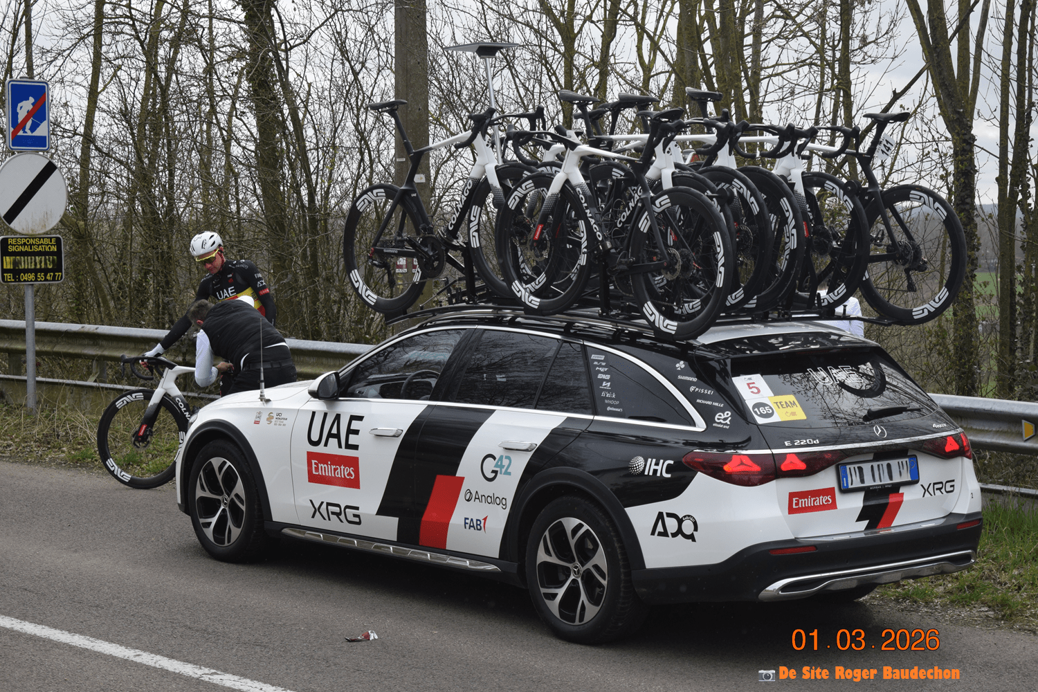 « KUURNE-BRUSSEL-KUURNE » 2026. « LCOW » Ă©tait dans le QUENEAU – Flobecq. Tout Ă coup, Tim WELLENS arrĂȘte face Ă nous. Un problĂšme de selle ? Le temps de prendre une image et de bien le regarder dans son superbe maillot tricolore. D’autres voitures arrĂȘtent Ă leur tour. Nous repartons vers la RN Flobecq-Renaix. Second point de passage. Les coureurs font le tour par LA HOUPPE, BOIS et la descente de la GARE. Les premiers ont augmentĂ© leur avance. Le peloton prend toute la largeur de la chaussĂ©e – pistes cyclables comprises. Il y a des lĂąchĂ©s. OĂč est la voiture balai ? AprĂšs un long dĂ©lai, le drapeau vert apparait. Les vĂ©hicules sont libĂ©rĂ©s. ArrivĂ© sur la Place de Flobecq, une ambulance passe dans l’urgence. Quid ? Au retour, nous verrons Tim WELLENS chuter juste aprĂšs les radars. A vol d’oiseaux, nous Ă©tions Ă©galement Ă +/- 1 km.