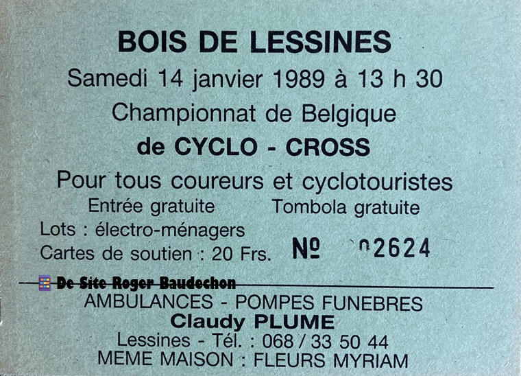 đ±De Site Roger Baudechon 2026. La carte de soutien du cyclo-cross de 1989 provient de feu LibertP. GĂ©nĂ©ralement les documents Ă©taient imprimĂ©s par GUY VAN NIEUWENHOVE Ă Lessines. Mr « ZANKER » aidait l’organisation – Fernand GORET.