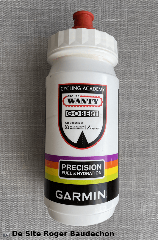 Le bidon « CYCLING ACADEMY » est en rĂ©alitĂ© celui de l’Ă©quipe « AARCO ». Un TACX 12/2025. Le bouchon existe en rouge/bleu et blanc.