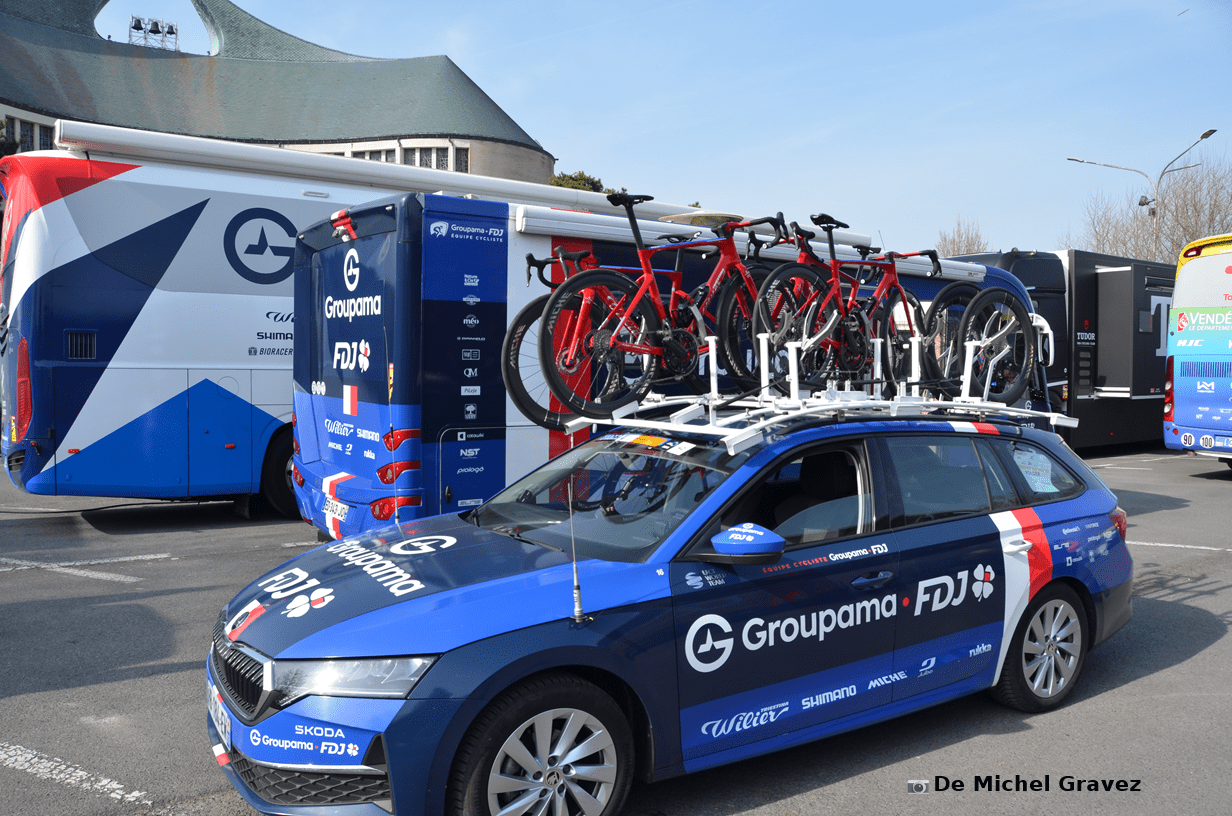 Coureurs, accessoires, directeurs sportifs, vĂ©los, … tous font partie d’un ensemble. En ce y compris les bus qui prennent une part très importante dans le transport et la rĂ©cupĂ©ration des troupes – surtout chez les pros.