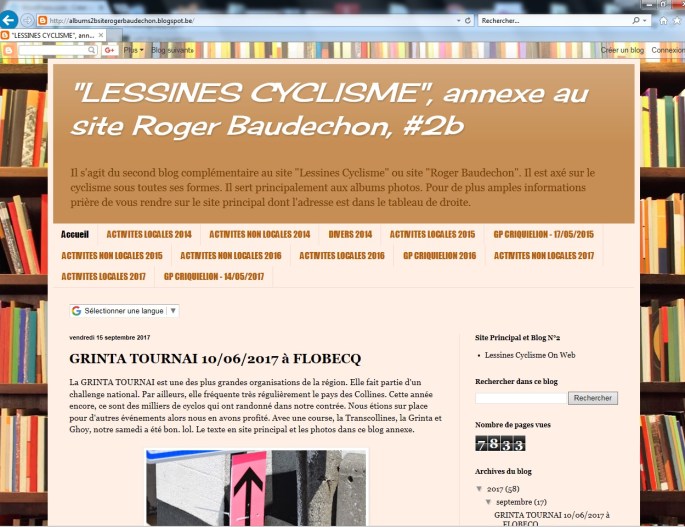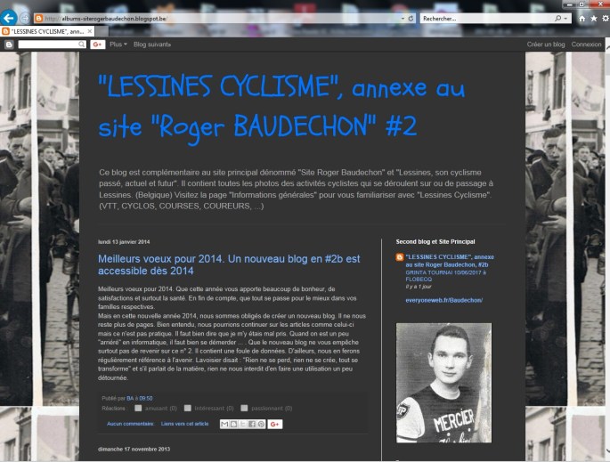 Lien vers le second blog aux photos. http://albums2bsiterogerbaudechon.blogspot.be/p/activites-non-locales-2017.html Voilà, nous avons maintenant réalisé la partie 2 relative aux images des activités non locales de 2017. http://albums2bsiterogerbaudechon.blogspot.be/p/activites-non-locales-2017.html LE CHAMPIONNAT DE BELGIQUE à Anvers, le 25/06/2017. (activités non locales 2017) VTT DORPFEESTEN à Biévene, le 20/08/2017. (activités non locales 2017) COURSE El sc et esp à Wodecq, le … Lire la suite BLOG AUX PHOTOS, CELA SE COMPLÈTE. Partie 2.