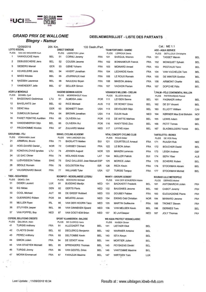 Corrigé le 12/09/2018. Merci à TRWORG.be pour l'envoi de la liste pour le "GP DE WALLONIE" de ce mercredi. Nous vous recommandons de visiter le site de TRWORG.be qui a pris un sacré coup de renouveau. Ultra complet, il contient tout ce que vous devez savoir à propos des épreuves qu'ils organisent. Lien >>> https://www.trworg.be/ Concernant … Lire la suite DEMAIN, UN #GPW2018 DE TRÈS BONNE FACTURE.