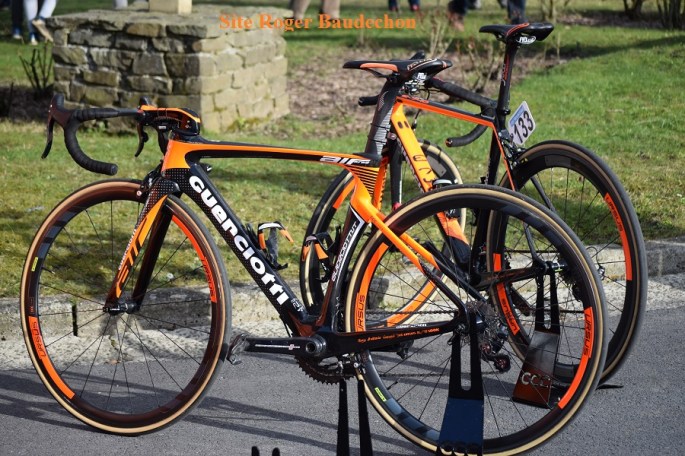 Pour les mordus du beau matériel, voici la photo des vélos de l'équipe polonaise "CCC SPRANDO POLKOWICE". Nous nous passerons de commentaires tellement ces bécanes "GUERCIOTTI" sont d'une beauté sans ... beaucoup de pareil. Le "LOOK" de FORTUNEO reste une machine du même acabit.