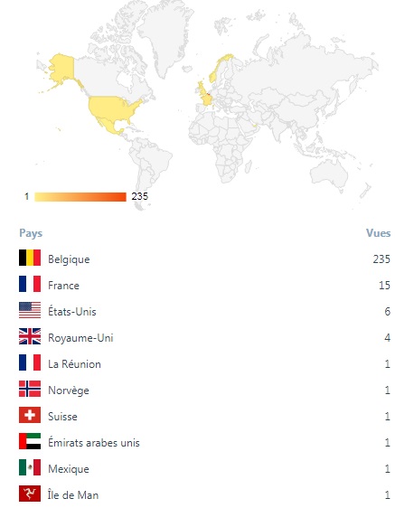 Corrigé, le 28/11/2018. Photo. Statistiques d'hier. Nous ne disposons que d'une cartographie. Les lecteurs, par contre, nous sont inconnus. Sur LCOW, tout est gratuit. Nous n'avons pas activé le cliquet pour faire de l'argent avec les visites. Nos pubs sont annoncées sous forme de troc. Il ne sera jamais question de lucre. Rappel pour les … Lire la suite #MERCI #DANKU #THANKYOU #TAKK #謝謝 #GRACIAS #OBRIGADO #TAK #спасибі … . DU MONDE ENTIER !!!