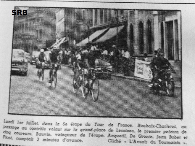 Photo. "Le Postillon". 1957. Une photo du journal "L'Avenir du Tournaisis" agrémentait l'article. Le peloton venait de la Rue de la Halle et traversait la Grand Place de Lessines. ANQUETIL, BOBET, DE GROOT, PICOT et BAUVIN étaient dans le groupe de tête. Le Tour de France n'a pas une grande histoire avec notre entité. Pourtant, … Lire la suite LE « TOUR DE FRANCE » A LESSINES. #1957 @LeTour