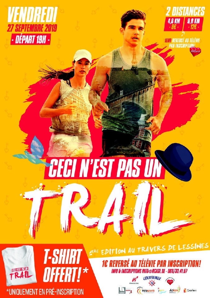Photo. Affiche. L'ami Claude a assisté au premier urban trail lessinois, "CECI N'EST PAS UN TRAIL". Il nous en a dit le plus grand bien. Une très belle animation qui a été suivie par beaucoup de participants. Une activité inédite pour l'entité lessinoise. #InnovationTop C'est le genre d'événement qui a le vent en poupe. Lessines … Lire la suite « CECI N’EST PAS UN (URBAN) TRAIL ». #Lessines #2019
