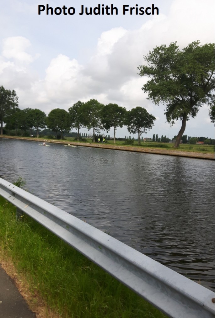 Le vélo est partout. Ici, le long du canal OSTENDE-BRUGGE, les entraîneurs accompagnent même les avirons. #Oufti