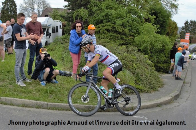 S'ils avaient voulu le faire exprès, pas sûr qu'ils y seraient parvenus !!! Jhonny était sur la "FLÈCHE WALLONNE" mais Arnaud y était également avec ses parents. Incroyable mais vrai, ils se sont mitraillés une bonne partie de la montée des coursiers. Là, Peter SAGAN, passe vraiment au second plan. Bravo à nos supers photographes !!! … Lire la suite « LA PHOTO DU JOUR ». Jhonny photographie Arnaud.