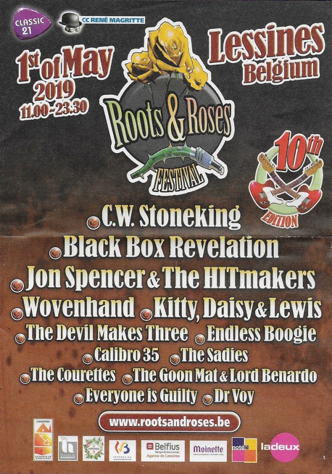 1er MAI 2019. C'est LE festival auquel il faut assister. Plusieurs chapiteaux, des groupes excellents, de l'alimentaire original ... et une entrée de 35€ ou 20 € (-26 ans) en prévente. GRATUIT pour les lessinois via une inscription préalable au CCRM. Pour tout savoir >>> http://www.rootsandroses.be/