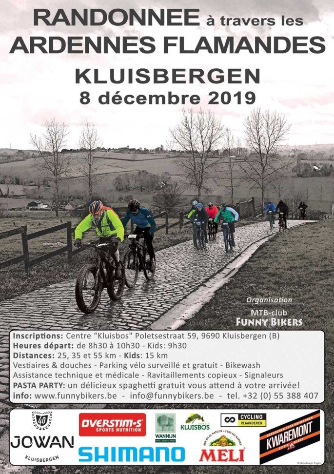 Les "FUNNY BIKERS" ne sont plus à présenter. (JOWAN) Voilà des années qu'ils ont investi la salle du "KLUISBOS" à Kluisbergen. C'est quasiment le Mont de l'Enclus. Il y a juste le versant qui change de nom. chez eux, il y a TOUJOURS quelque chose de différent. Une année, nous avions même reçu un plat … Lire la suite MTB/VTT-KLUISBERGEN-08/12/2019.