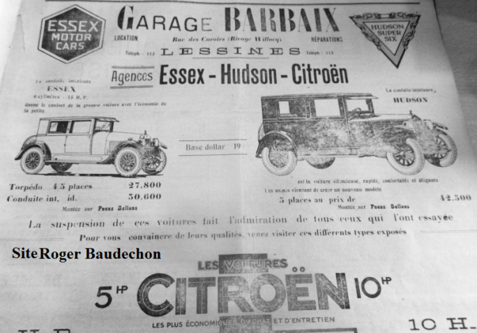 Photo. Article du journal "LE POSTILLON" de 1925. 1925, les américains de la marque "HUDSON" et de sa filiale "ESSEX" occupent déjà le marché de l'automobile en Belgique. Il ne faut pas perdre de temps et surtout éviter que d'autres puissances ne s'engouffrent dans ce secteur. Ces voitures sont à Lessines au "GARAGE BARBAIX" situé … Lire la suite 1925, l’économie d’après-guerre est relancée. #Lessines #2020