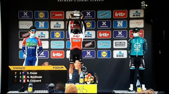 Photo. Le petit kangourou remporte sa dernière course avant de retourner dans son Australie natale. C'était prévu. Un sprint final a été le résultat d'un "GP DE L'ESCAUT" de qualité moyenne. Une course de kermesse est probablement plus emballante. EWAN l'emporte et ACKERMANN est déclassé. COQUARD prend le relais sur le podium. Le régional de … Lire la suite EWAN A GAGNE UNE BELLE KERMESSE. #ScheldePrijs #GPDeL’Escaut #Résultats #2020