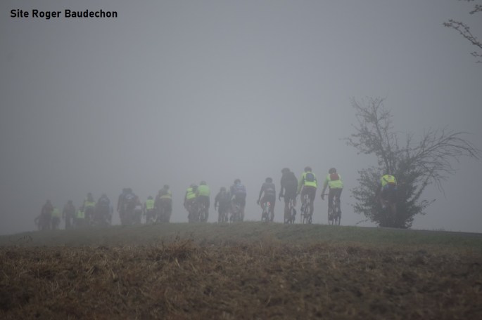 Photo. Et le brouillard fut ... . Avec cette image, vous pouvez mieux comprendre pourquoi les Championnats de Belgique des dames ont été à la limite du report/annulation. A 10h00, il faisait un brouillard à ne pas voir passer un peloton de cyclotouristes. #Fou