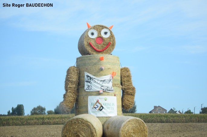 Photo. A Kester. Sûr que les cyclistes des deux épreuves citées ci-avant ont pu se demander s'ils n'étaient pas sur le "TDF". Des montages faits de ballots de paille jonchent tout le parcours entre GOOIK et HERNE. Animations garanties toute l'année. #Top