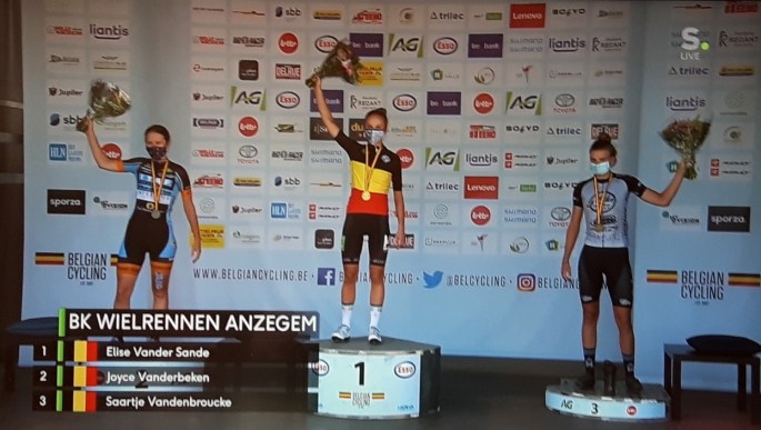 Photo. Dernier podium des dames. Elise VANDER SANDE, la championne.