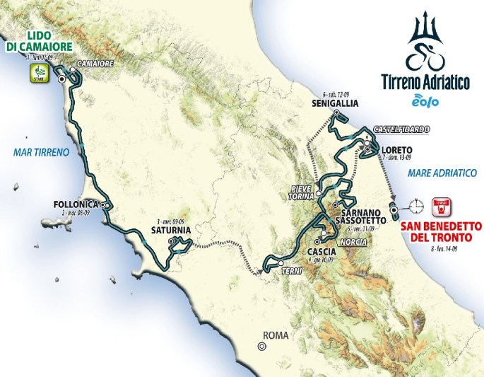Parcours. Une des plus grandes épreuves d'Italie passe totalement inaperçu. Pourtant, elle a débuté le 07/09/2020 et se terminera le 14/09/2020. Il est possible de la suivre sur le live de "SPORZA" en matinée. D'autres chaines en font la diffusion. Le "TOUR DE FRANCE" s'accapare toutes les audiences. En ce moment, ACKERMANN (2 étapes) et … Lire la suite « TIRRENO-ADRIATICO ». #07/14-09 #2020