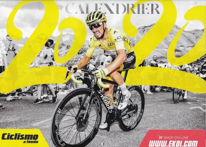 Photo. Le calendrier 2020 de la marque "EKOI". En début d'année ("VELOFOLLIES") la marque de vêtements et accessoires distribuait des gadgets et des calendriers. Hier, quand Julian ALAPHILIPPE a remporté de main de maître l'étape 2 devant un nom moins fabuleux Marc HIRSCHI, nous nous sommes souvenu de cette pièce de collection. "EKOI" avait eu … Lire la suite « EKOI » A EU LE NEZ CREUX. #tdf #Et2 #ALAPHILIPPE1er #2020