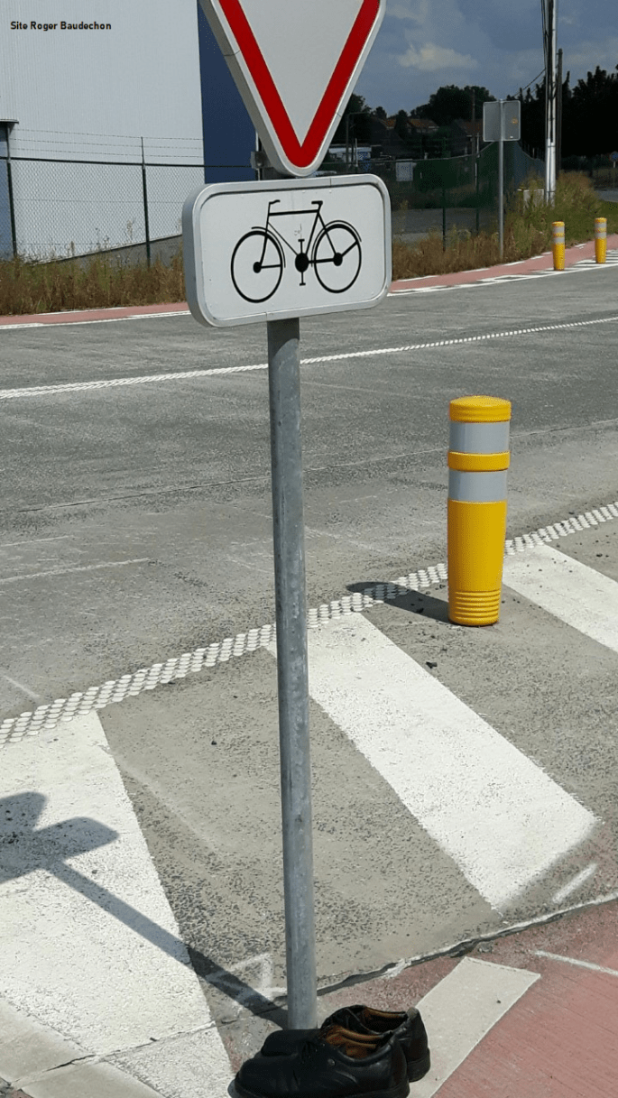 Photo. Près de Baxter et Intermarché à Lessines. C'est à croire que les bulles pour la récolte des vêtements/chaussures sont remplies. Autant à Bassilly, il y avait une chaussure accrochée à un panneau "point-nœud" autant à Lessines, une paire était bien rangée devant un "céder le passage". Si le gars a continué sur les chaussettes … Lire la suite L’INSOLITE. #2020