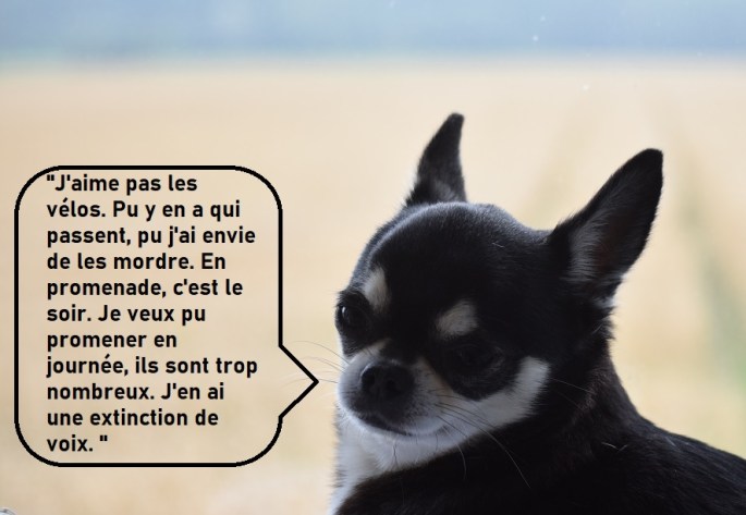 "Le comble pour un amateur de cyclisme est d'avoir un chien qui ne supporte pas de voir ou de croiser des vélos." #Crises #Aboiements #Emballements