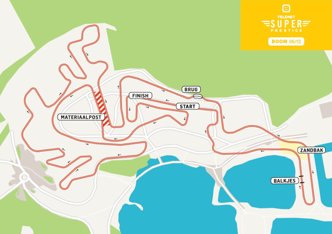 Affiche du circuit. C'est ce dimanche que la ville de BOOM sera le centre d'intérêt pour la prochaine manche du "SUPERPRESTIGE". Programme : 13h40 Elites Dames et 15h00 Elites Hommes. Et le tout sera diffusé par les chaines suivantes : Qui va se risquer à donner VAN AERT 1er dans les pronos ?